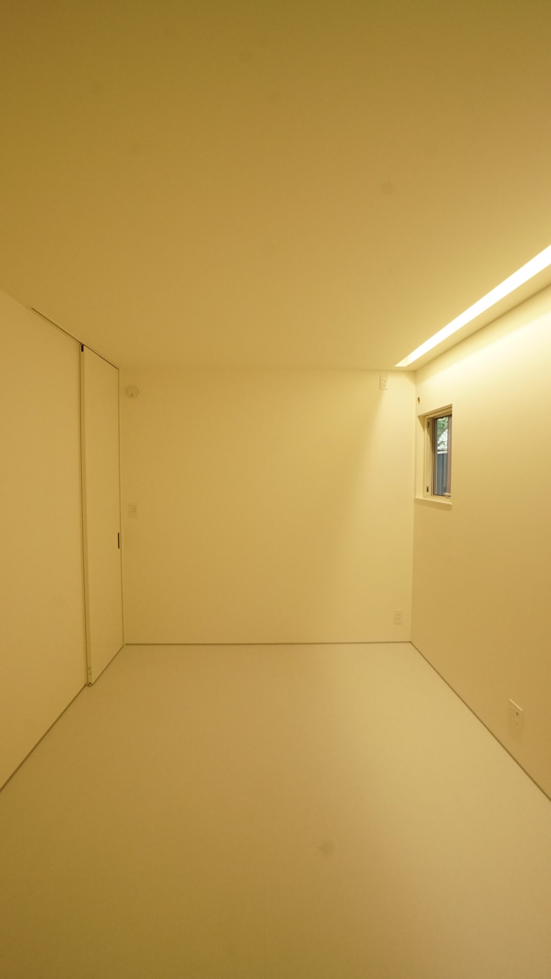 夜は間接照明の淡い光がリビングを照らします